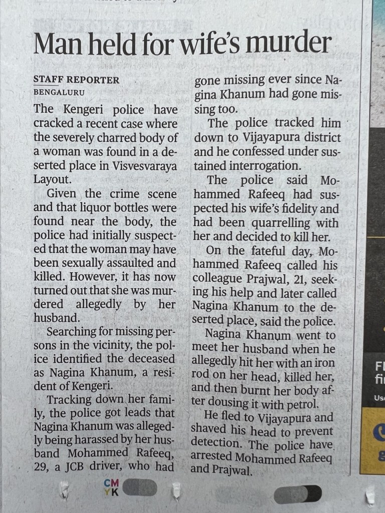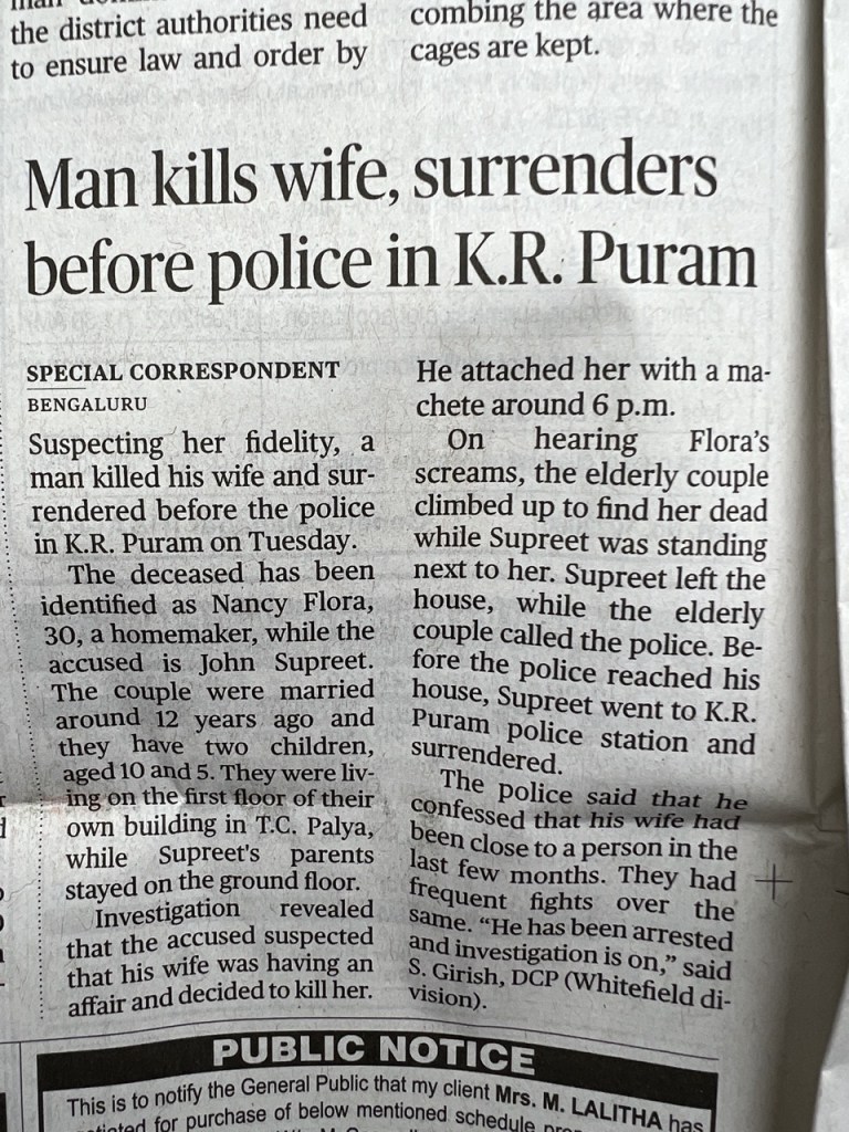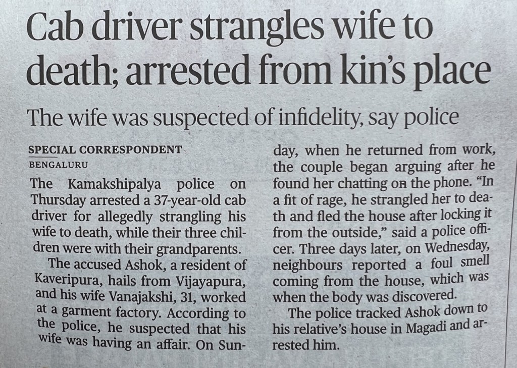 For the last few months, I’ve been taking photos of news reports in The Hindu on male violence against women. The pattern is disheartening.