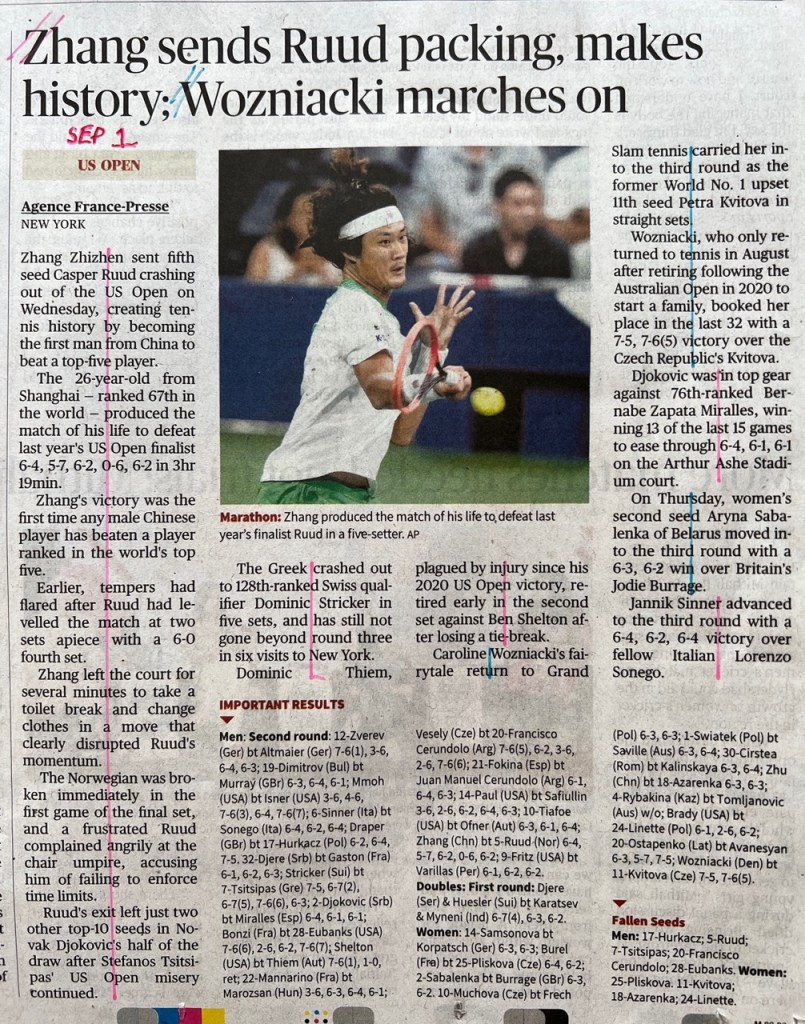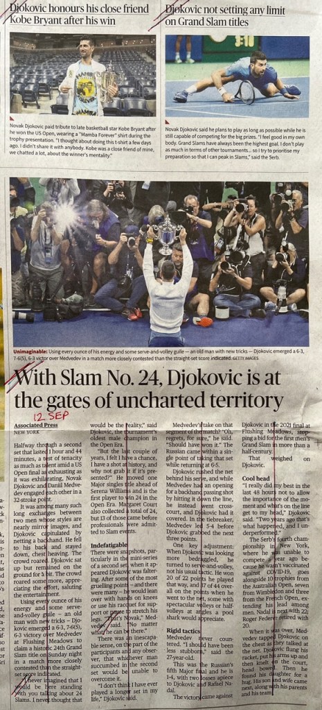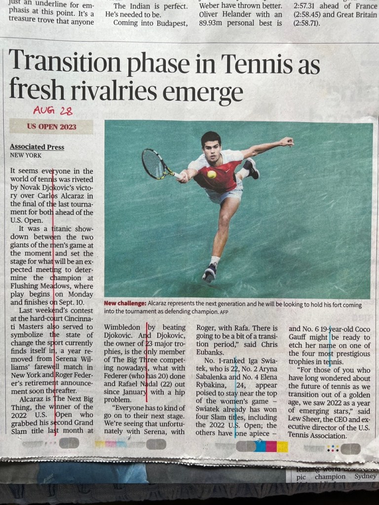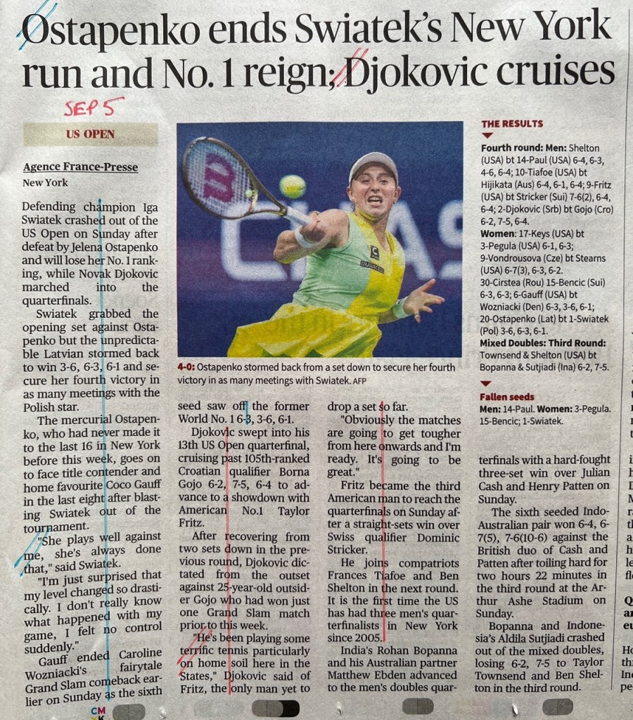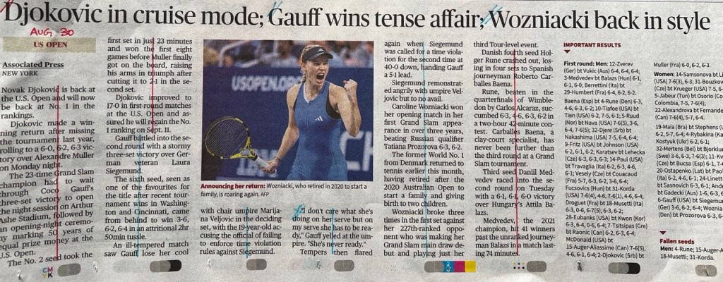 The US Open 2023 concluded yesterday, and throughout the tournament I kept track of how my newspaper – The Hindu – covered the men’s game vs. the women’s game in their sports pages, to see if there was any bias there. (Previously I covered Wimbledon.)